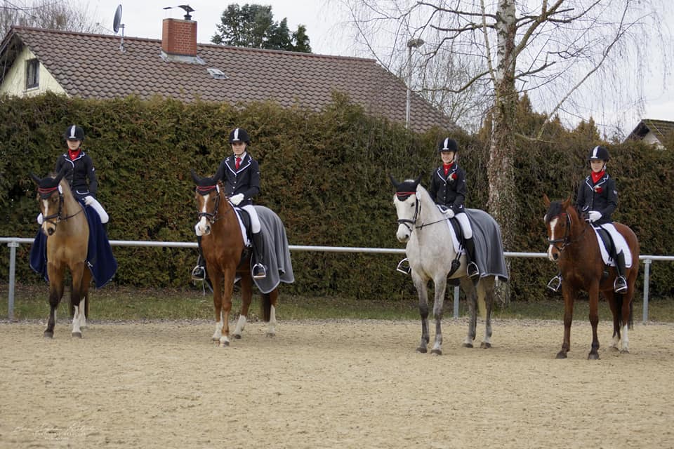 In der ersten Dressurreiterprüfung Kl. A sicherte sich Amelie Schütz mit Karla den 3. Platz. Auch Laura Helmstädter zeigte in der zweiten Dressurreiterprüfung Kl. A mit ihrem Ferro eine schöne Runde und konnte sich so über den 4. Platz freuen. In der Dressurprüfung Kl. A** waren die beiden erneut erfolgreich. Laura und Ferro platzierten sich auf dem 6. Platz. Miriam Arras konnte sich mit ihrem Wallach Cayetano in dieser Prüfung über den 8. Platz freuen.