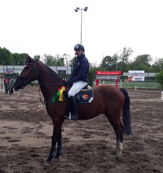 Alea Wohlgemuth startete währenddessen auf dem Springturnier in Worms-Pfeddersheim. Hier konnte sie mit einem hervorragenden Ritt auch die Richter/innen begeistern. In der Springpferdeprüfung Kl. A* erhielt sie mit ihrer Stute Chira JV von @sportpferde_eichelshof eine tolle Wertnote von 7,8 und sicherte sich so Platz 7.