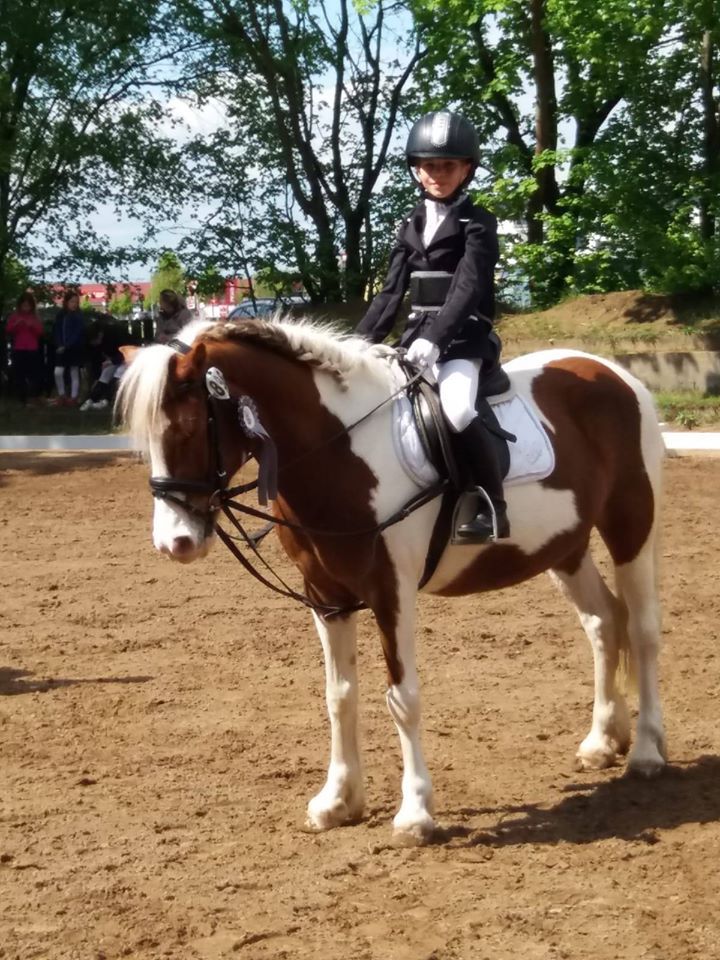 Samstags begannen die kleinen Reiterinnen und Reiter. Hier konnte sich Amelie Meisinger mit ihrem Pony California in einem Reiterwettbewerb Schritt-Trab-Galopp auf dem 2. Platz platzieren.