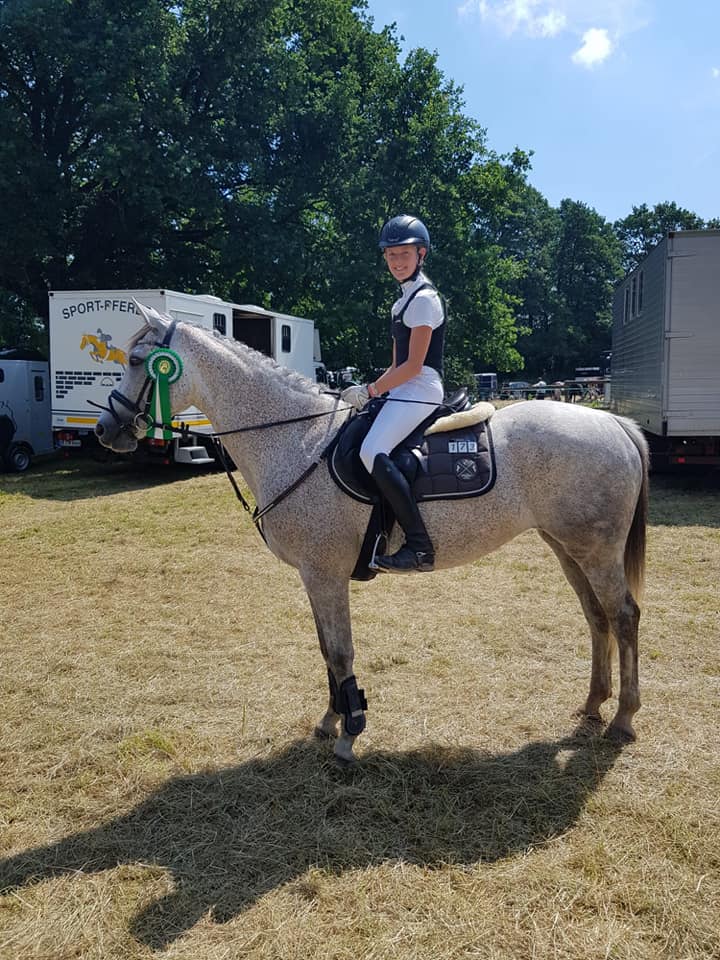 Am ersten Juli Wochenenden konnte sich wieder einige Reiterinnen auf dem Reitturnier in Pfungstadt platzieren. In einem Stilspring-Wettbewerb Kl. E verpasste Jule Schütz mit ihrer Belle Petite knapp den ersten Platz und sicherte sich Platz 2. In einer Stilspringprüfung Kl. A* platzierten sich die beiden auf dem 8. Platz.